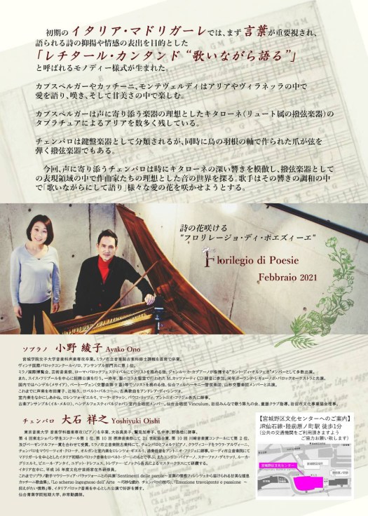 出演:ソプラノ 小野綾子 チェンバロ 大石祥之